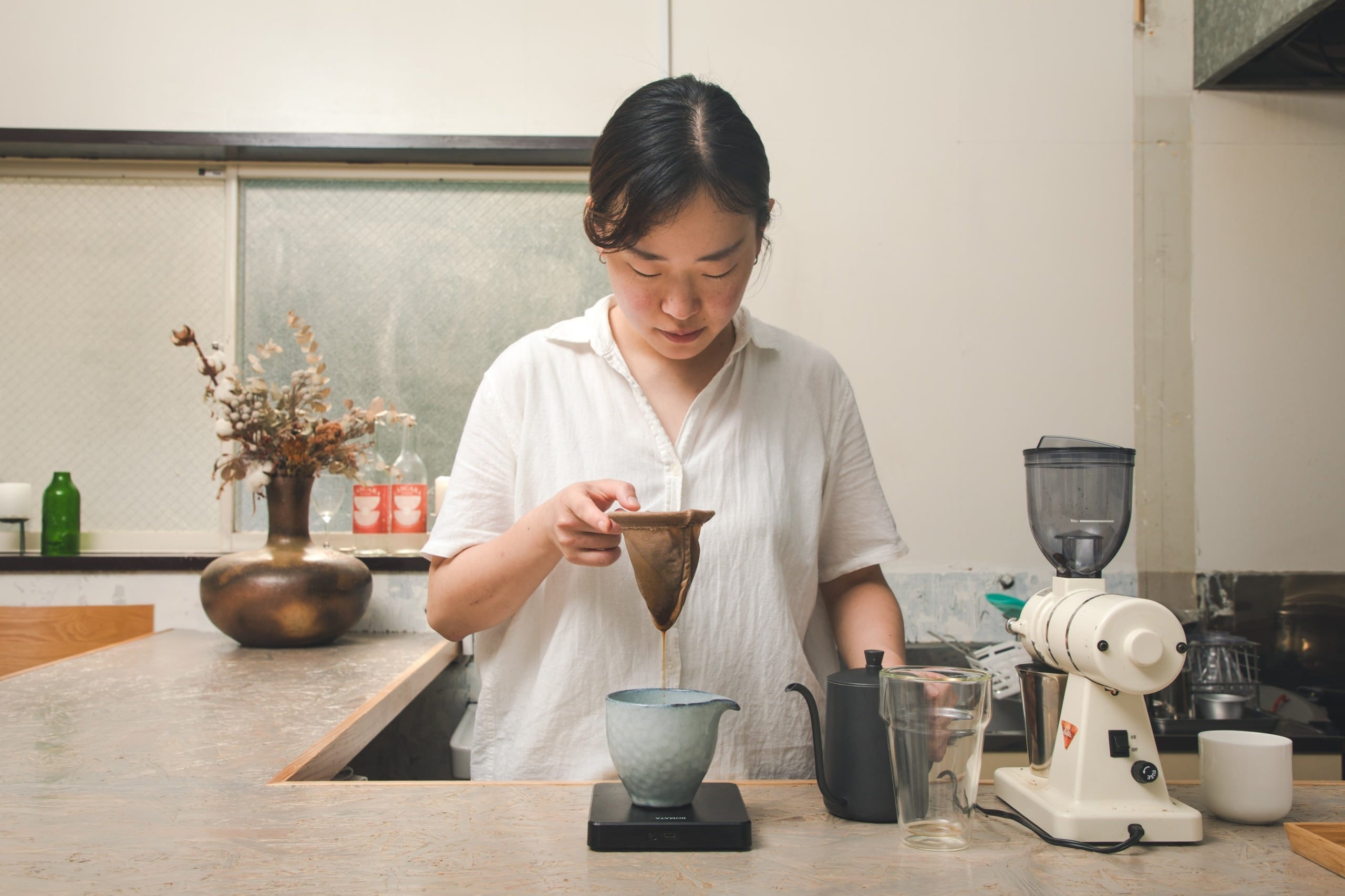 HARSHA COFFEE代表の篠﨑友(しのざきゆう)と申します。いつかおばあちゃんになったら珈琲屋ができたらなと思っていたのですが、ご縁で25歳の時にHARSHA COFFEEを作りました。2026年、3年目の珈琲屋です。心がけてしていることが、朝にシヴァナンダヨガと瞑想。日々、心身を整えてから珈琲屋を開けています!